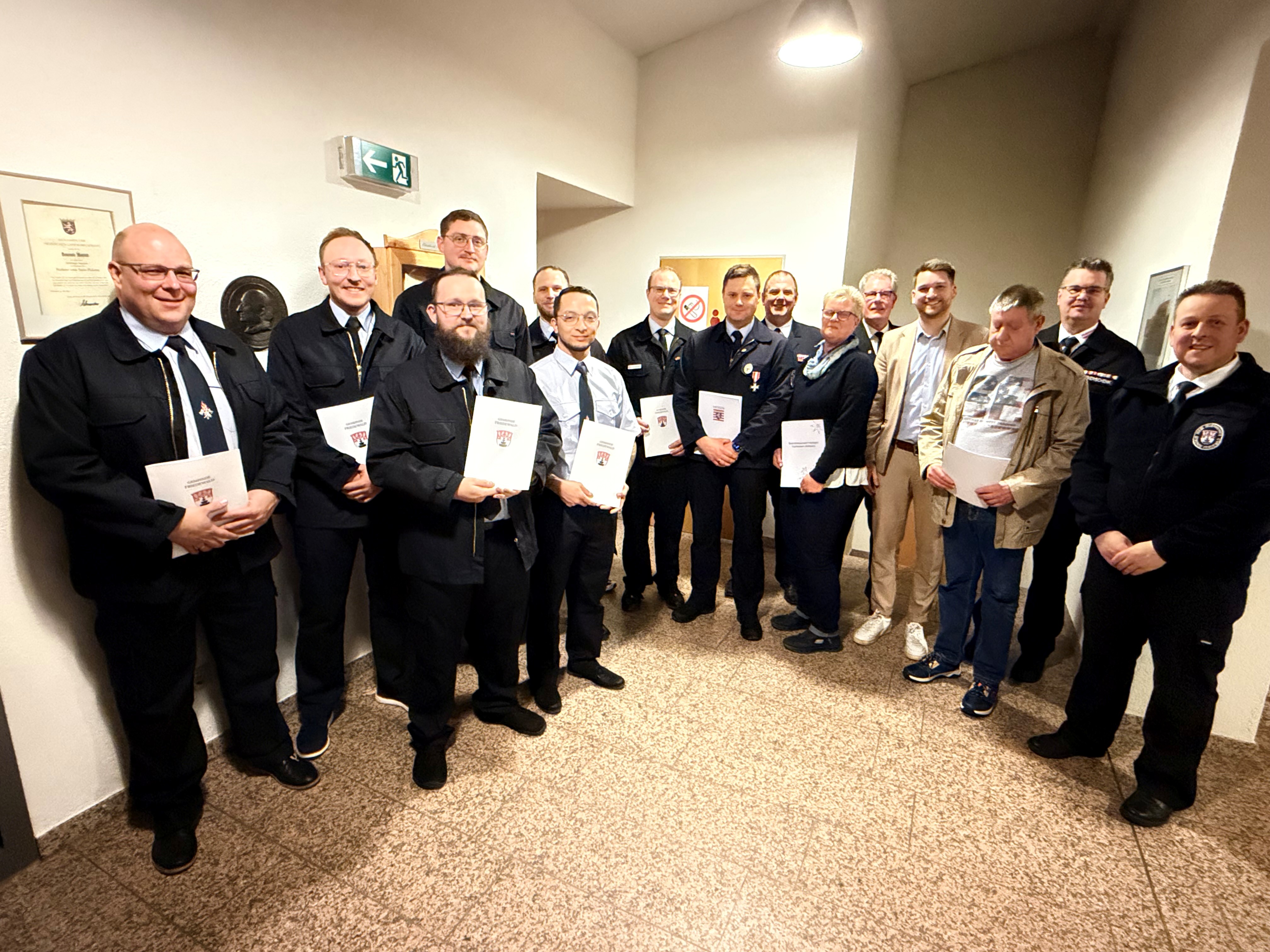 Neben den Einsätzen nahm auch die Aus- und Fortbildung viel Raum ein. Insgesamt absolvierten die Einsatzkräfte 31 Ausbildungs- und Übungsdienste sowie zwei Alarmübungen. Ergänzend fanden eine Unterweisung im Bereich UVV-Atemschutz sowie mehrere Lehrgänge auf Kreis- und Landesebene statt.